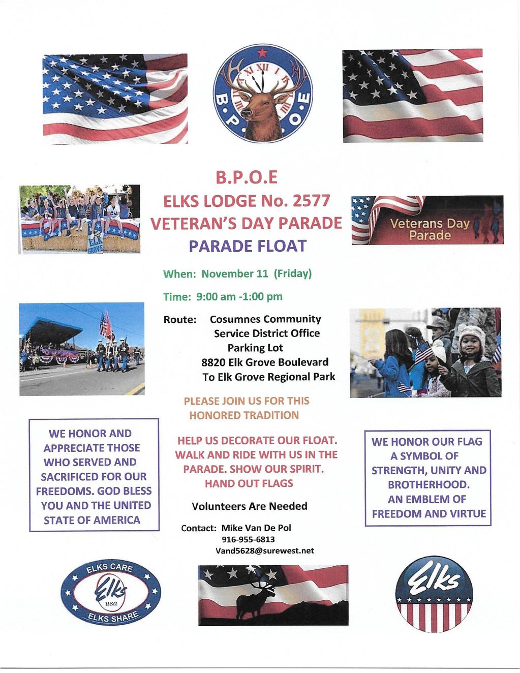 2022 Elk Grove Veteran's Parade Lodge Float - Help Needed